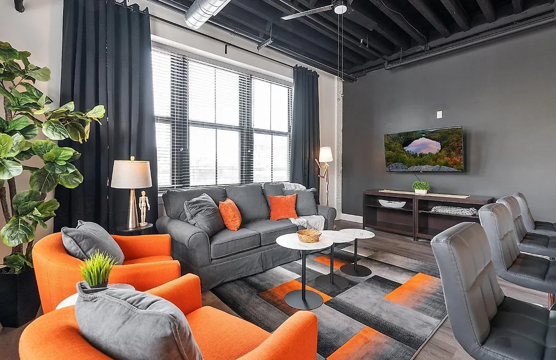 An iron and ironing board, and air conditioning, along with modern amenities like a flat-screen TV with satellite channels, ensure a more enjoyable stay. The 84 m² Luxury Urban 1Br King Bed-Parking - Heart Of Historic Germantown - Temple & Lasalle -105- Stay Long Term! is also furnished with a sofa set and a writing table. Offering a separate toilet, a bath, and a shower, a bathroom comes with a dryer and bath sheets.